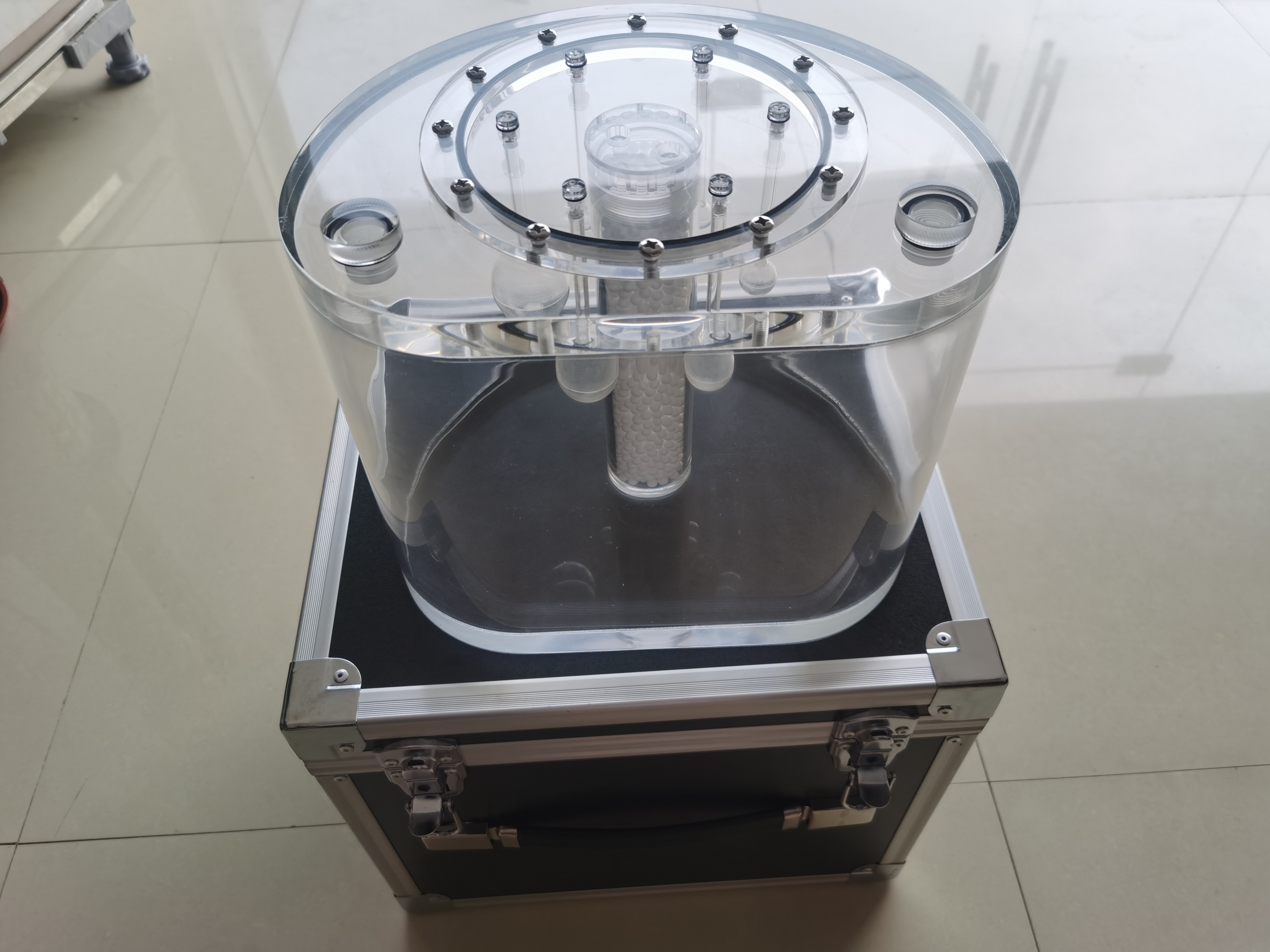 5. PET體部模體 由體部模體、肺部衰減插件和六個不同尺寸空心球插件組成。 體部模體長度大于180mm ,容積70000ml。 模體中央圓柱體肺部插件外徑為50mm±2mm 、壁厚4mm ,可插入模體中心并 延伸到模體的軸向全長 。 插件內(nèi)填充物為肺組織等效材料 ,材料平均密度為0 . 30g/mL ±0 . 10g/mL的低原子序數(shù)物質(zhì)。 六個空心球內(nèi)徑分別為10mm、13mm、17mm、22mm、28mm和37mm,球壁厚度≤1mm。